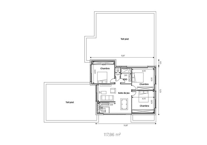 - Superficie étage : 117,86m2