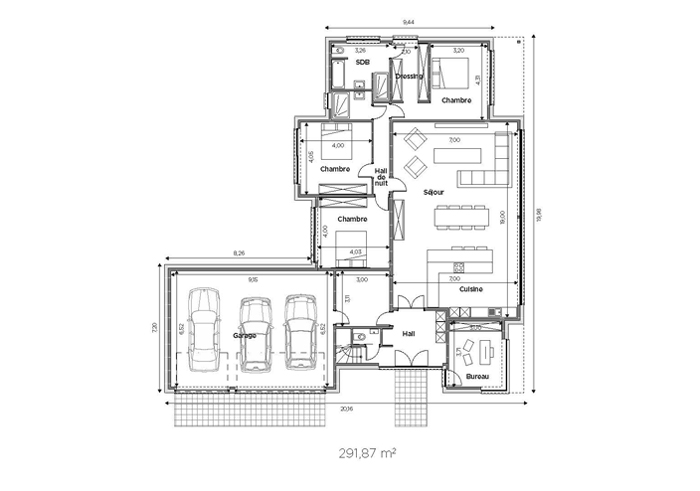 - Superficie rez-de-chaussée : 291,87m2