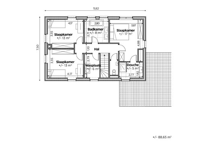 - Eerste verdieping oppervlakte : 88.65m2