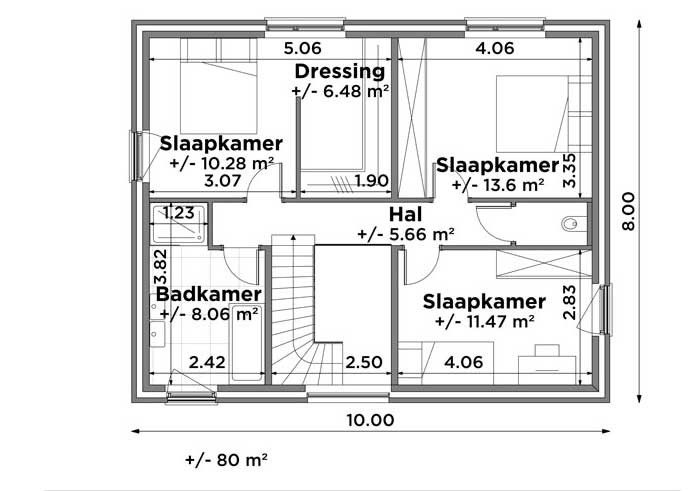 - Eerste verdieping oppervlakte : 80m2