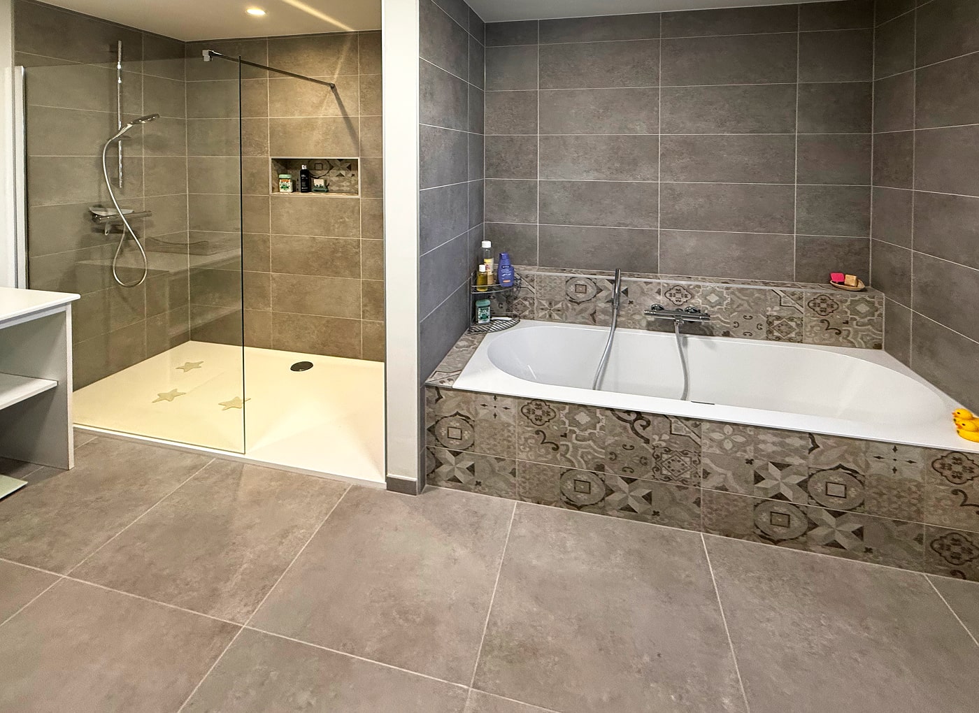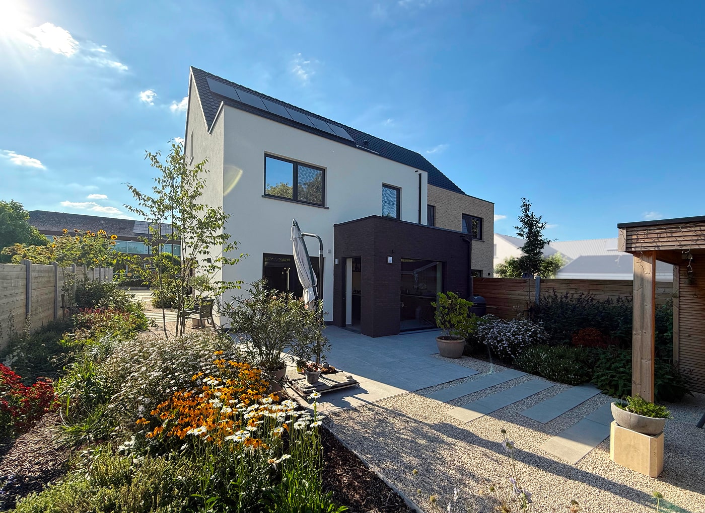 Découvrez cette élégante maison jumelée offrant une généreuse surface habitable de 226 m². Au rez-de-chaussée, vous profiterez d'un espace de vie lumineux ouvert sur une grande cuisine avec îlot central – idéale pour des moments conviviaux en famille ou entre amis. Les nombreuses fenêtres laissent entrer une abondante lumière naturelle et accentuent le caractère ouvert de la maison. Le rez-de-chaussée comprend également un grand hall d'entrée et un cellier pratique. Une cage d'ascenseur est prévue, permettant l'installation future d'un ascenseur. À l'étage, vous trouverez trois chambres et un cellier faisant office de buanderie. Une luxueuse salle de bains équipée d'une baignoire et d'une douche à l'italienne vous promet une détente absolue. Les combles spacieux de 52 m² offrent un espace de rangement supplémentaire.